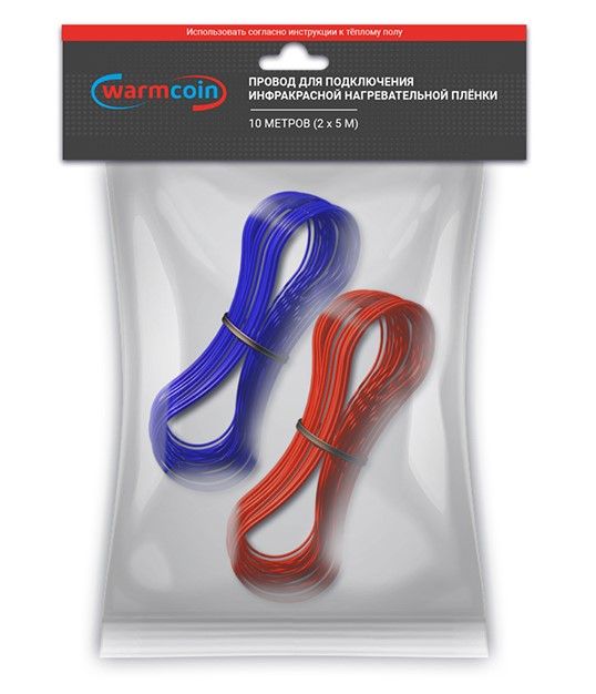 Готовые комплекты проводов для монтажа пленочного пола. В комплекте 2 провода: красный и синий (сечением 1 х 1,5 мм) Размеры: - 10 м (2*5 м синий / красный) - 20 м (2*10 м синий / красный)